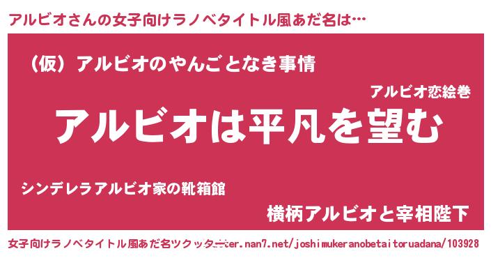 | 男性向けラノベタイトル風あだ名 | 『ダンジョンにアルビオを求めるのは間違っているだろうか』 |