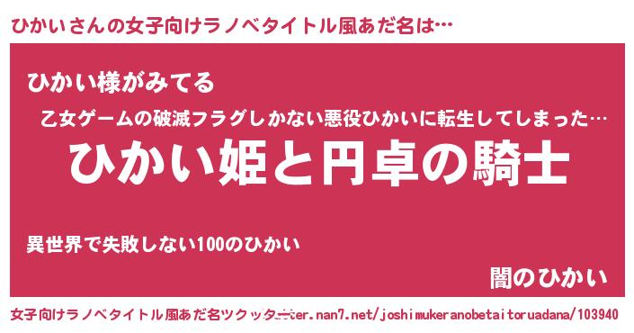 | 男性向けラノベタイトル風あだ名 | 『ひかいの憂鬱』『魔弾の王とひかい』 |