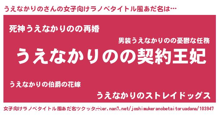 | 胡散臭い通販商品みたいなあだ名 | 『来世でも幸せになれる水素水…その名も「うえなかりの」』 |