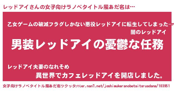 | 男性向けラノベタイトル風あだ名 | 『うちのレッドアイが世界を掌握している!』 |