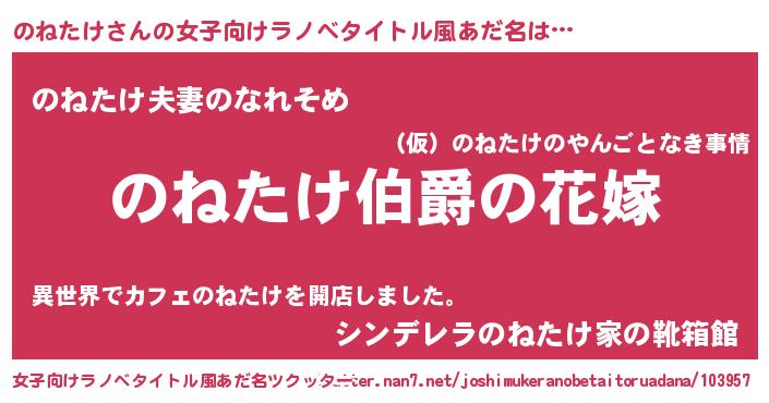 | 意味不明あだ名 | 『のねたけフォーエバー』『自称のねたけ』 |