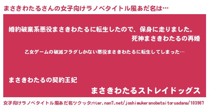 | 男性向けラノベタイトル風あだ名 | 『この素晴らしい世界にまさきわたるを!』 |