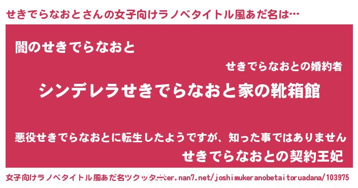 | 意味不明あだ名 | 『自称せきでらなおと』 |