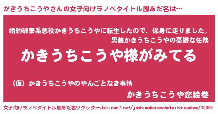| 男性向けラノベタイトル風あだ名 | 『かきうちこうやの嫁は女の子じゃないと思った?』 |