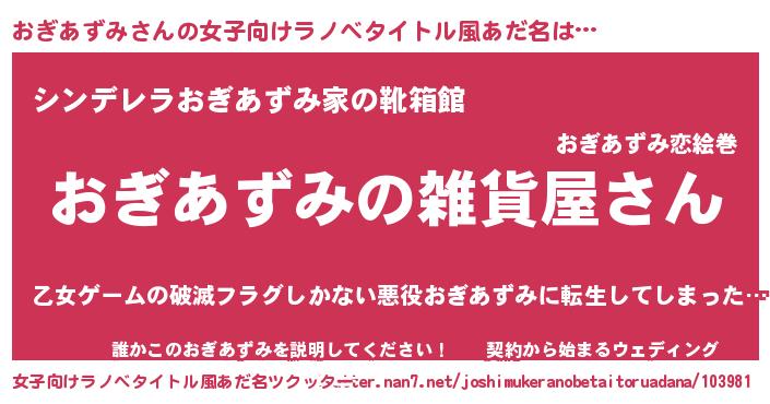 | 男性向けラノベタイトル風あだ名 | 『やはりおぎあずみの青春ラブコメはまちがっている 』 |