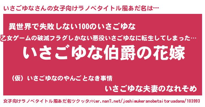 | 男性向けラノベタイトル風あだ名 | 『やはりいさごゆなの青春ラブコメはまちがっている 』 |