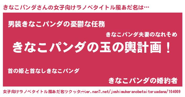 | 胡散臭い通販商品みたいなあだ名 | 『運命の人と巡り会える高級そうな絵画…その名も「きなこパンダ」』 |