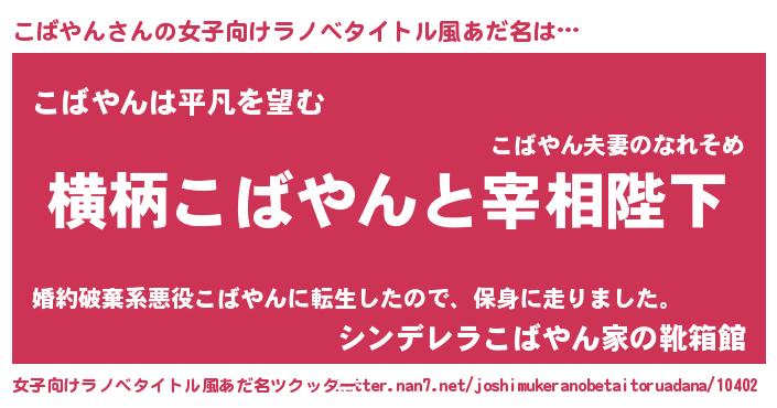 | 胡散臭い通販商品みたいなあだ名 | 『全米が絶賛したサプリメント…その名も「こばやん」』 |