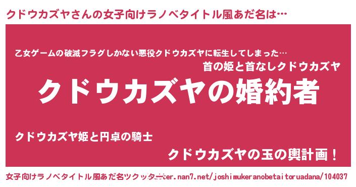 | 胡散臭い通販商品みたいなあだ名 | 『運命の人と巡り会える高級そうな絵画…その名も「クドウカズヤ」』 |