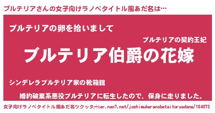 | 胡散臭い通販商品みたいなあだ名 | 『世界が平和になる高級そうな絵画…その名も「ブルテリア」』 |