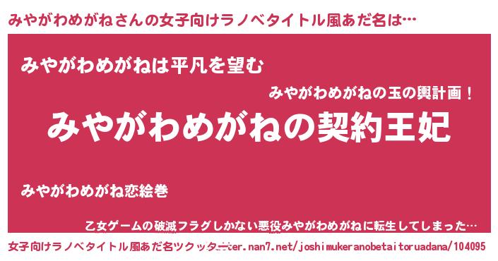 | 胡散臭い通販商品みたいなあだ名 | 『来世でも幸せになれる健康食品…その名も「みやがわめがね」』 |