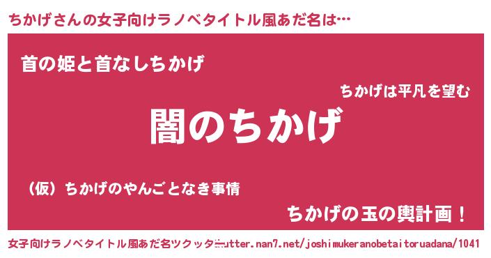 | 男性向けラノベタイトル風あだ名 | 『Re:ちかげから始める異世界生活』 |