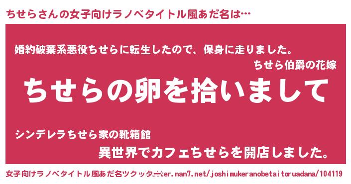 | 意味不明あだ名 | 『とにかく怪しいちせら』『自称ちせら』 |