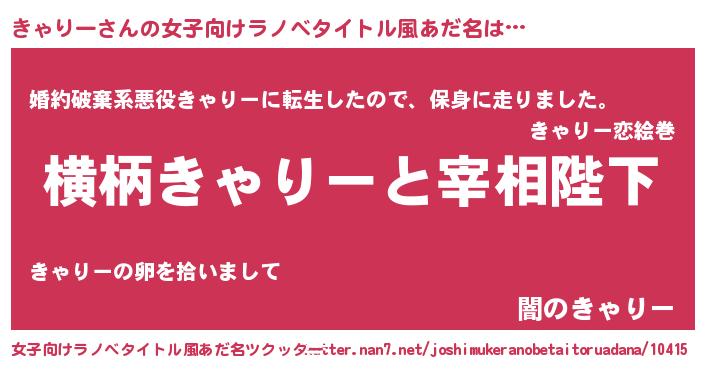 | 男性向けラノベタイトル風あだ名 | 『きゃりーに滅ぼされるだけの簡単なお仕事です』 |