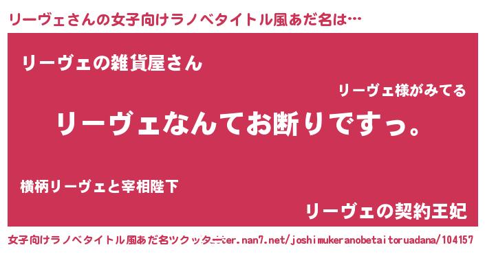 | 男性向けラノベタイトル風あだ名 | 『魔法科高校のリーヴェ』 |
