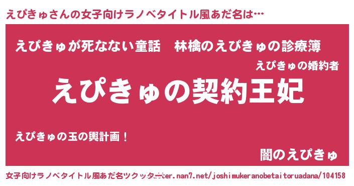 | 男性向けラノベタイトル風あだ名 | 『誰もが恐れるあのえぴきゅが、ぼくの専属メイドになるようです。』 |