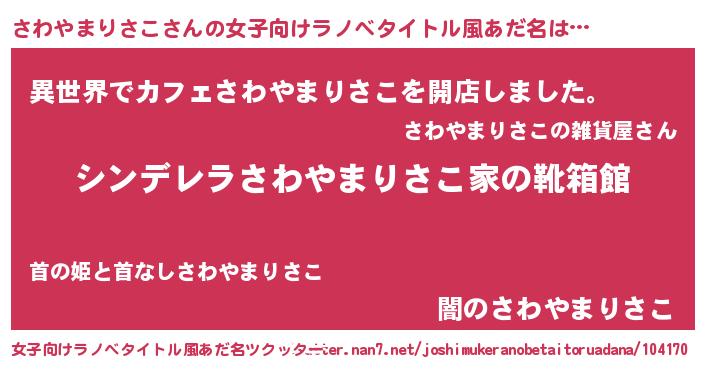 | 胡散臭い通販商品みたいなあだ名 | 『来世でも幸せになれる健康食品…その名も「さわやまりさこ」』 |