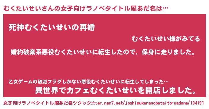 | 男性向けラノベタイトル風あだ名 | 『転生したらむくたいせいだった件』 |