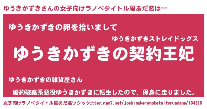 | ヒーロー風カッコイイあだ名 | 『ネオユウキカズキ』『幻影騎士ユウ』 |