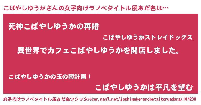 | 男性向けラノベタイトル風あだ名 | 『誰もが恐れるあのこばやしゆうかが、ぼくの専属メイドになるようです。』 |