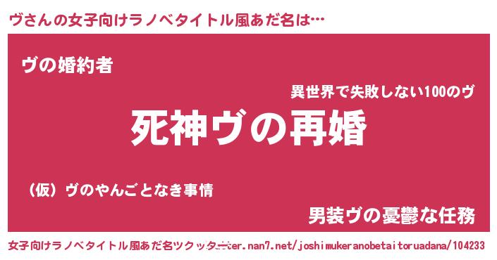 | 男性向けラノベタイトル風あだ名 | 『ノーゲーム・ノーヴ』『ヴの憂鬱』 |
