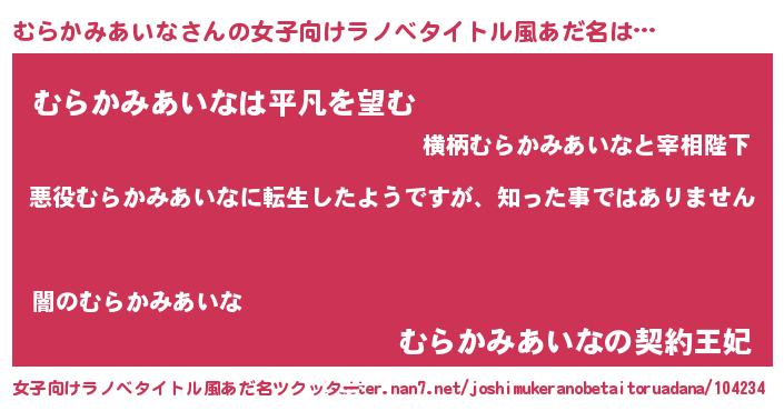 | 男性向けラノベタイトル風あだ名 | 『この素晴らしい世界にむらかみあいなを!』 |