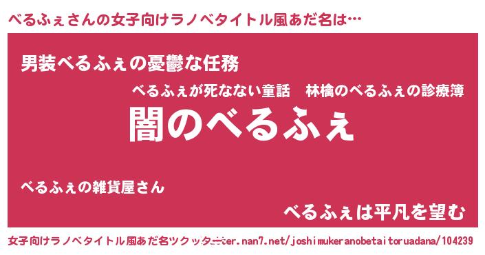 | 肩書あだ名 | 『べるふぇ総統』『べるふぇ艦長』 |
