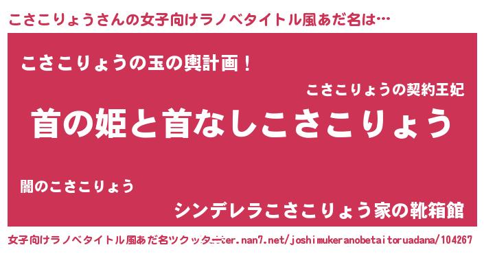 | 男性向けラノベタイトル風あだ名 | 『はたらくこさこりょうさま!』 |