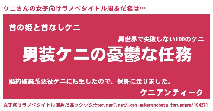 | 男性向けラノベタイトル風あだ名 | 『冴えないケニの育てかた』 |