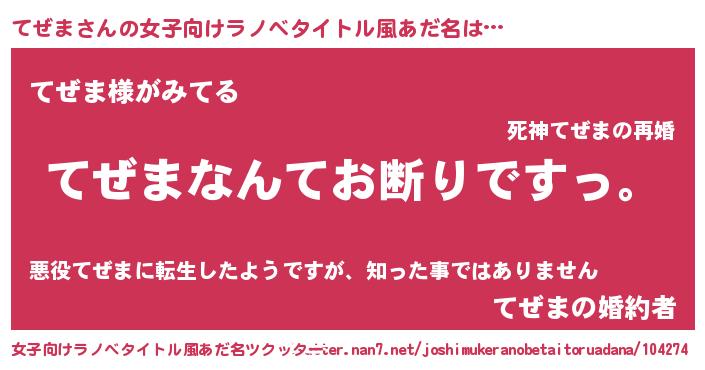 | 男性向けラノベタイトル風あだ名 | 『魔法科高校のてぜま』 |