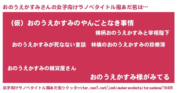 | 男性向けラノベタイトル風あだ名 | 『魔弾の王とおのうえかすみ』 |