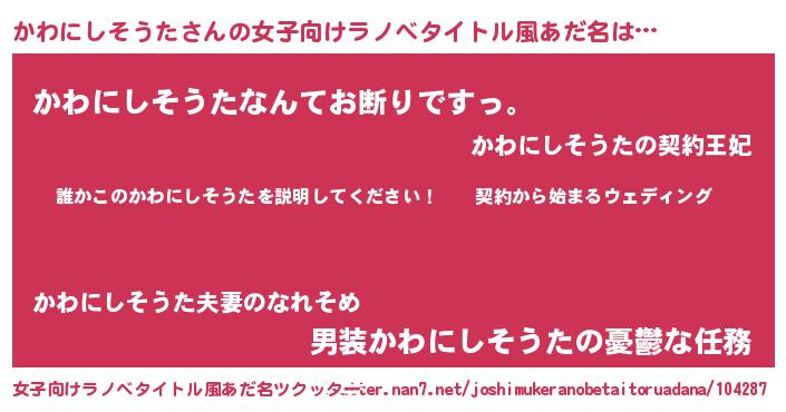 | 男性向けラノベタイトル風あだ名 | 『カワニシソウタアートオンライン』 |