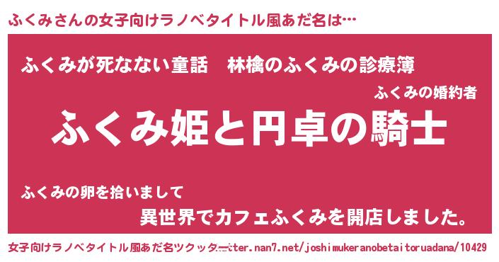 | 胡散臭い通販商品みたいなあだ名 | 『モテモテ間違いなし水晶球…その名も「ふくみ」』 |