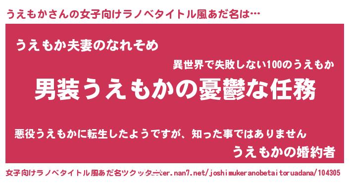 | ヒーロー風カッコイイあだ名 | 『慈愛の使者うえもか』『ネオウエモカ』 |