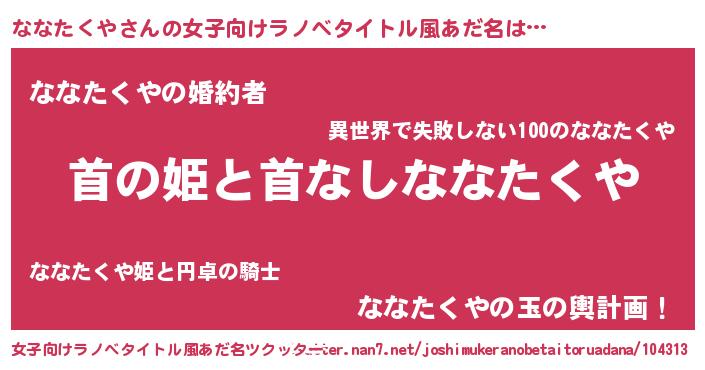 | ファンタジー風あだ名 | 『エターナルナナタクヤー』『ナナフェル』 |