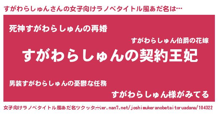 | 胡散臭い通販商品みたいなあだ名 | 『来世でも幸せになれる水素水…その名も「すがわらしゅん」』 |