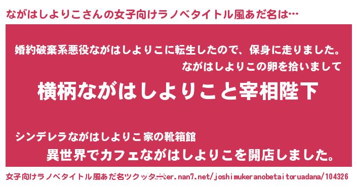 | 男性向けラノベタイトル風あだ名 | 『ながはしよりこに滅ぼされるだけの簡単なお仕事です』 |