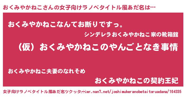 | 男性向けラノベタイトル風あだ名 | 『おくみやかねこの憂鬱』 |