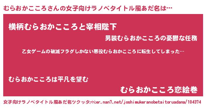 | 男性向けラノベタイトル風あだ名 | 『この素晴らしい世界にむらおかこころを!』 |