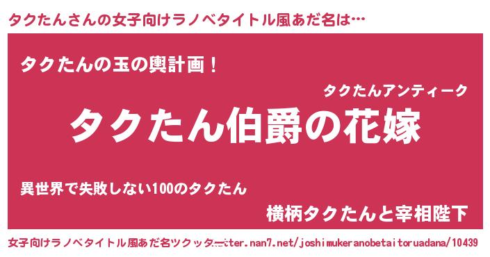 | 欧米人風あだ名 | 『タクたんクリステル』 |