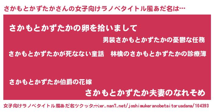 | 意味不明あだ名 | 『住所不定無職さかもとかずたか(71歳)』 |