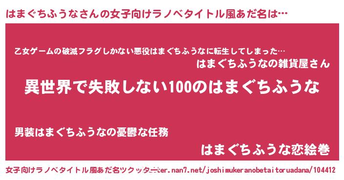 | 男性向けラノベタイトル風あだ名 | 『はまぐちふうなという概念が存在しない退屈な世界 』 |