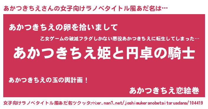 | ヒーロー風カッコイイあだ名 | 『スーパーアカツキチエ』『魔戒騎士アカ』 |