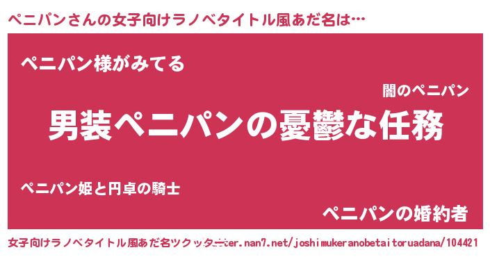 | 男性向けラノベタイトル風あだ名 | 『うちのペニパンが世界を掌握している!』 |