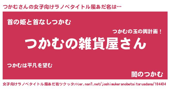 | ヒーロー風カッコイイあだ名 | 『ウルトラつかむマン』『幻影騎士ツカ』 |