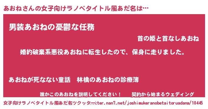 | 胡散臭い通販商品みたいなあだ名 | 『必ず成功する水晶球…その名も「あおね」』 |