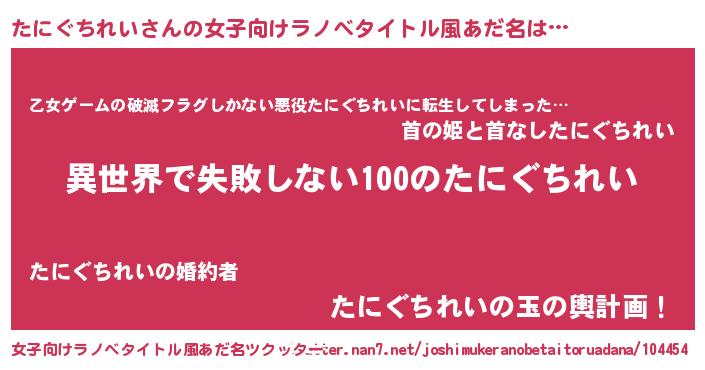 | 男性向けラノベタイトル風あだ名 | 『たにぐちれいという概念が存在しない退屈な世界 』 |