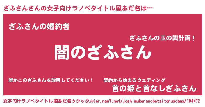 | 男性向けラノベタイトル風あだ名 | 『Re:ざふさんから始める異世界生活』 |