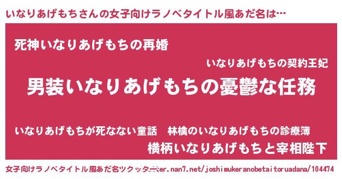 | 男性向けラノベタイトル風あだ名 | 『うちのいなりあげもちが世界を掌握している!』 |