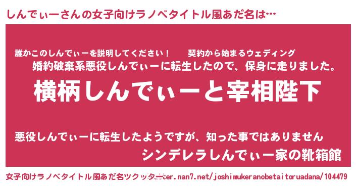 | 男性向けラノベタイトル風あだ名 | 『しんでぃーに滅ぼされるだけの簡単なお仕事です』 |